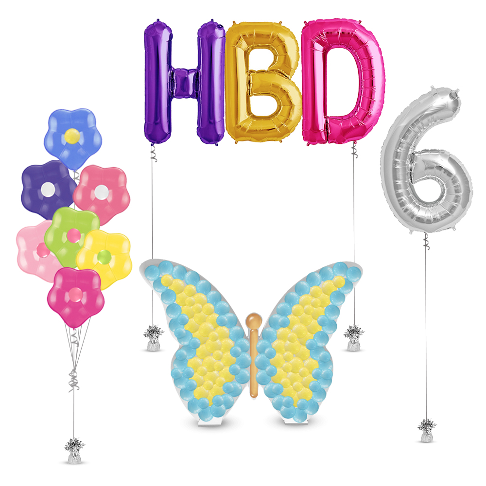 1 piece 3ft Giant Yellow Balloons with "Happy Birthday"  message in Black Sticker and 4 pieces of tassels in Yellow and Black