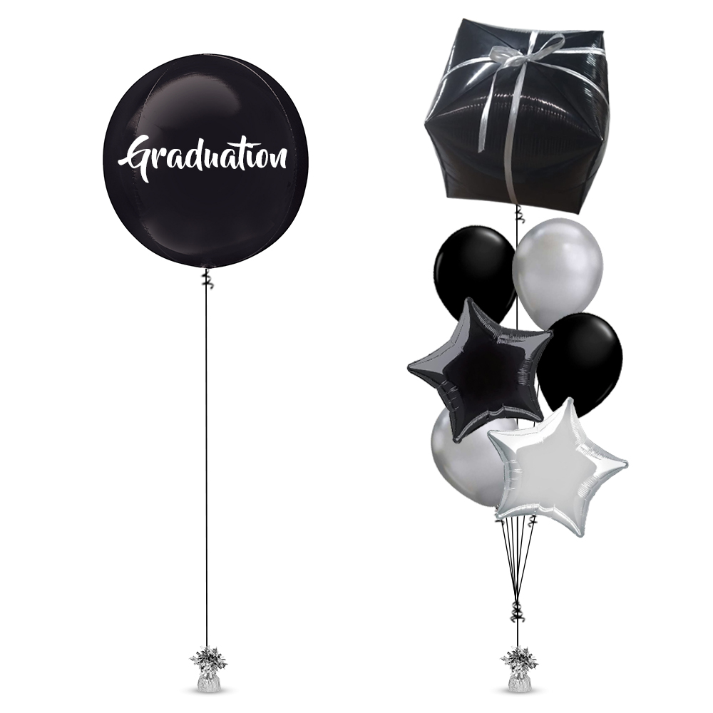 1 piece 18 inch Black Orbs Balloon with Graduation message in White