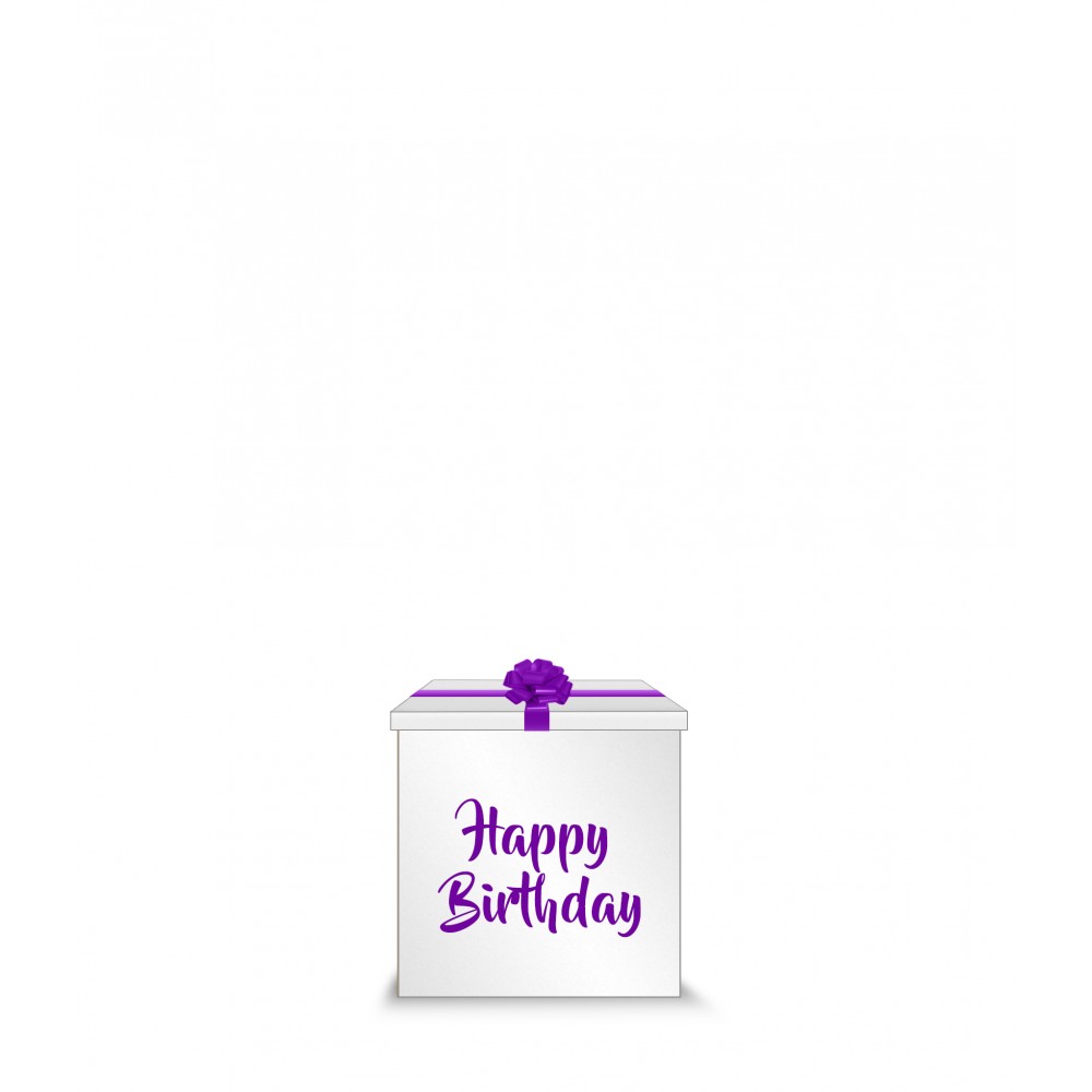 1 piece 1 meter by 1 meter White Big Gift Box with ribbon and “Happy Birthday” message, sticker in Purple