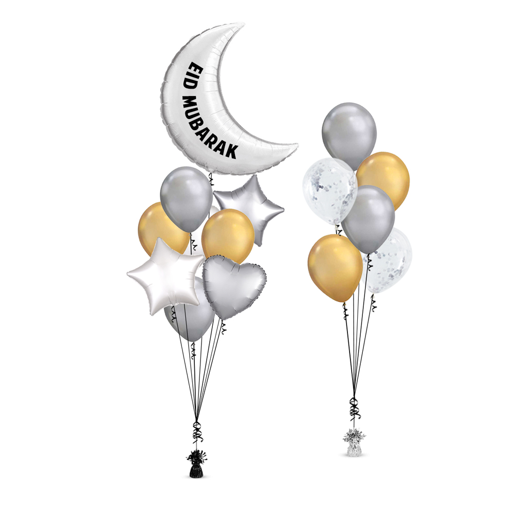 - 1 Piece Silver Moon Balloon with Phrase "Eid Mubarak" in Black (35 inch)