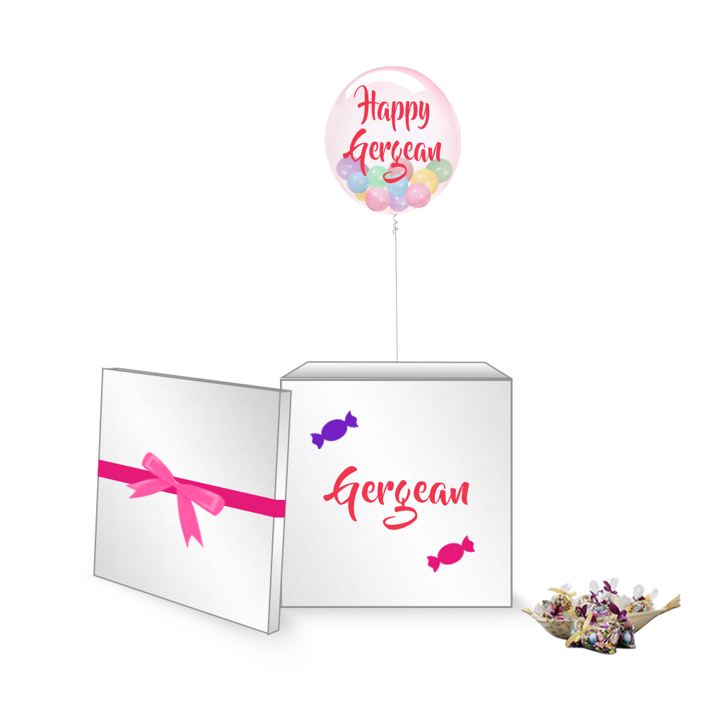 1 White Big Box Gift With Ribbon “Gergean With Candies” Sticker Message