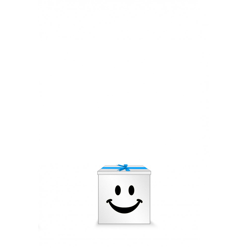 1 piece 50cm by 50cm White Small Gift Box with ribbon and “Smiley Face” Message outside the box in Black sticker