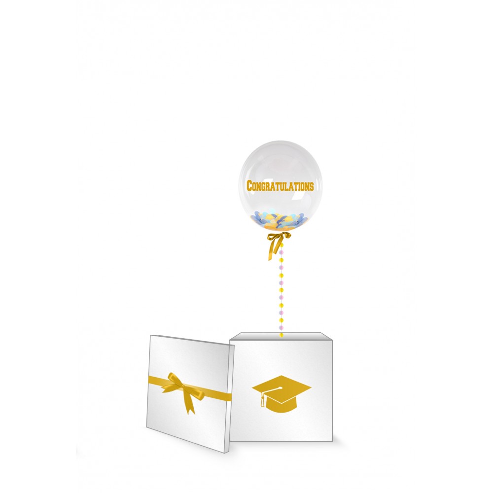 1 Piece 24 inch Clear Bubble Balloon, Stretchy plastic material with “Congratulations” message in Gold Sticker