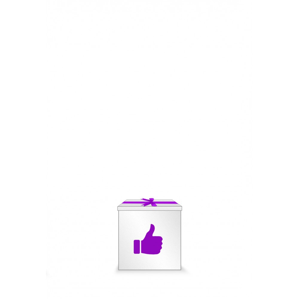 1 piece 50cm by 50cm White Small Gift Box with ribbon and “Thumbs Up” Message outside the box in Purple sticker