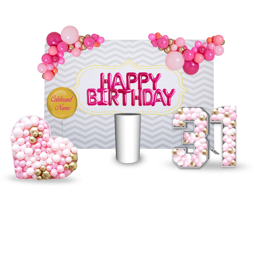 1 piece 3 meter by 2 meter Banner with Happy Birthday Magenta Letter Balloon