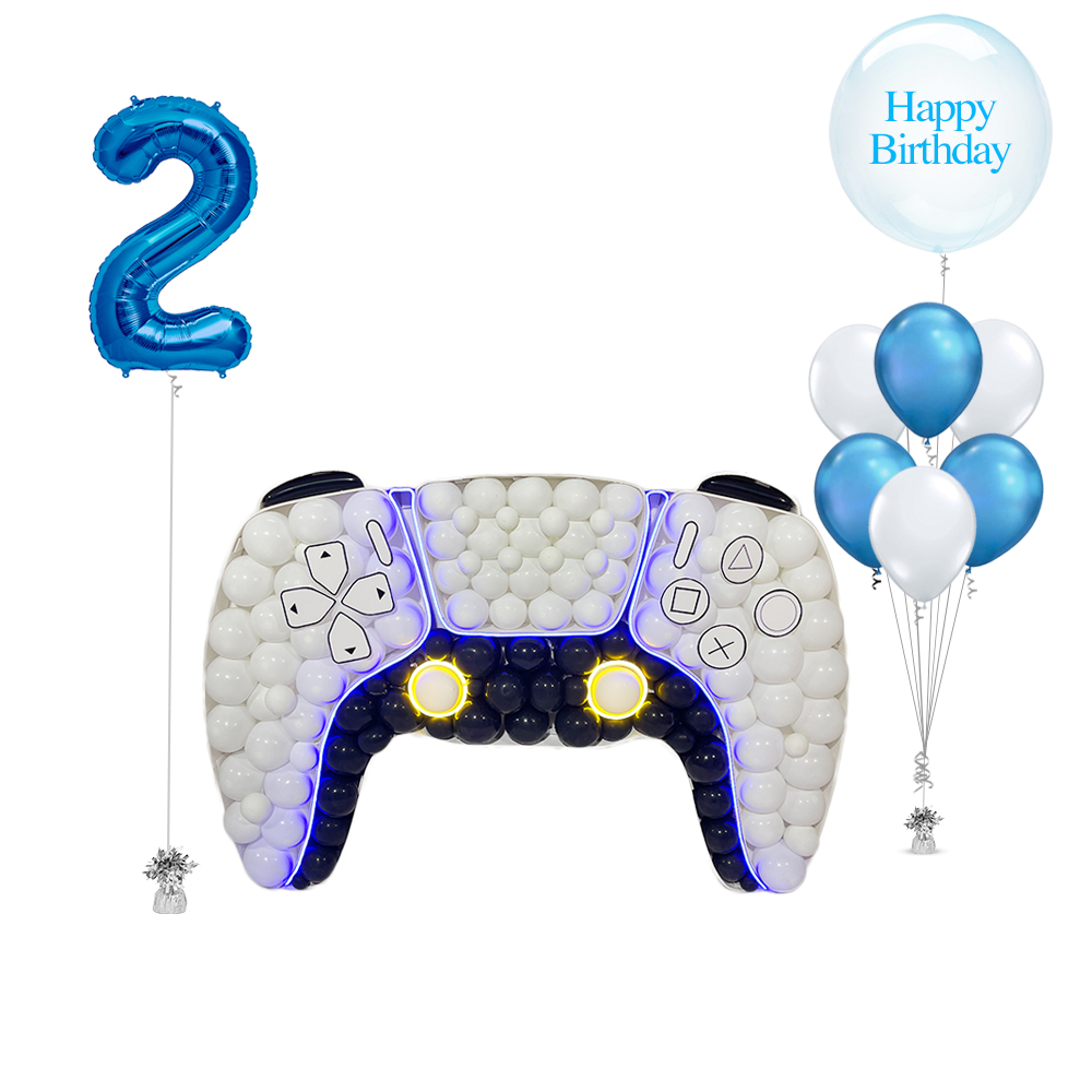 3- 24" bubble balloon with Happy Birthday Sticker in blue