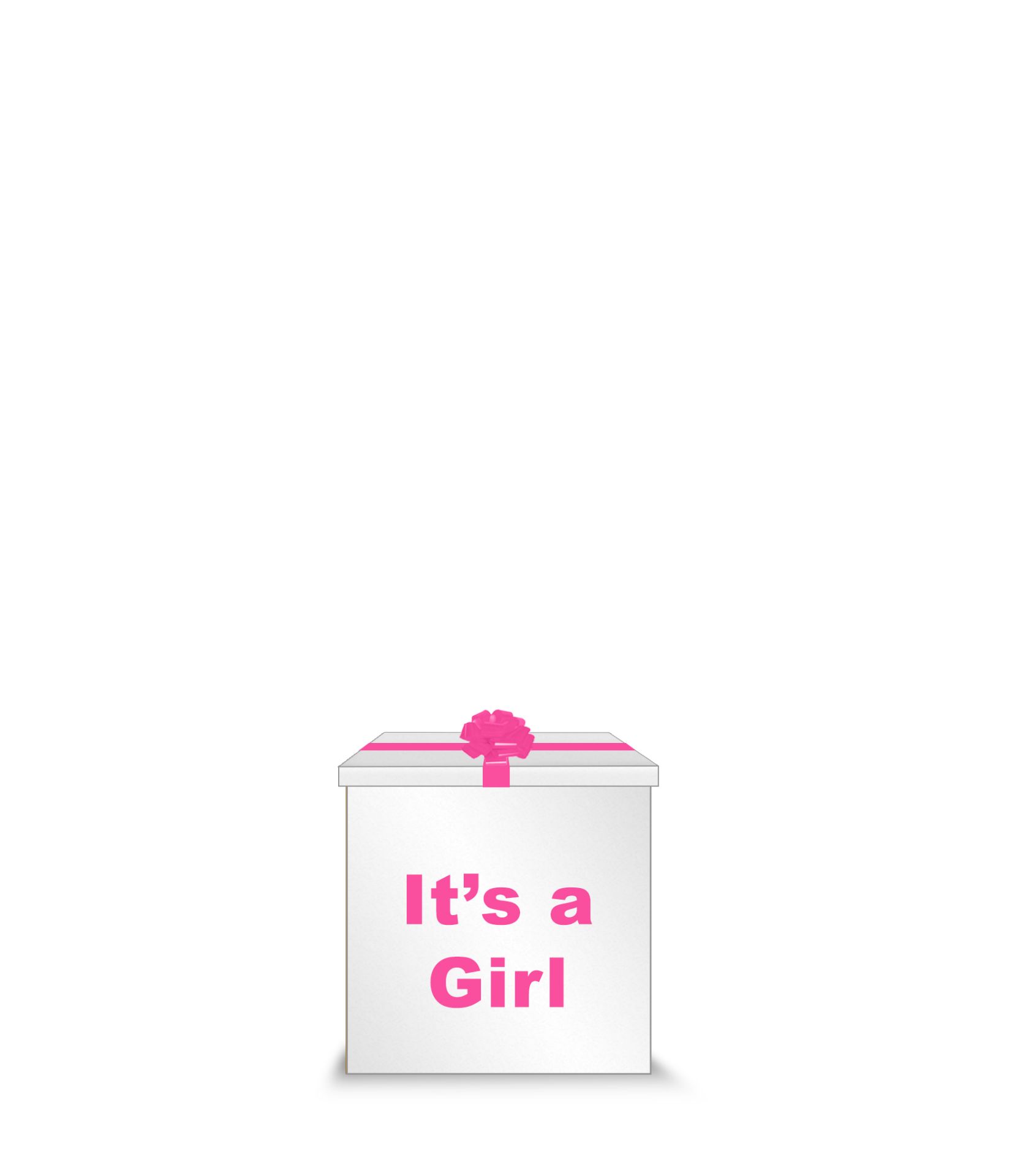 1 piece 1 meter by 1 meter White Big Gift Box with ribbon and “It’s A Girl” message, sticker in Dark Pink
