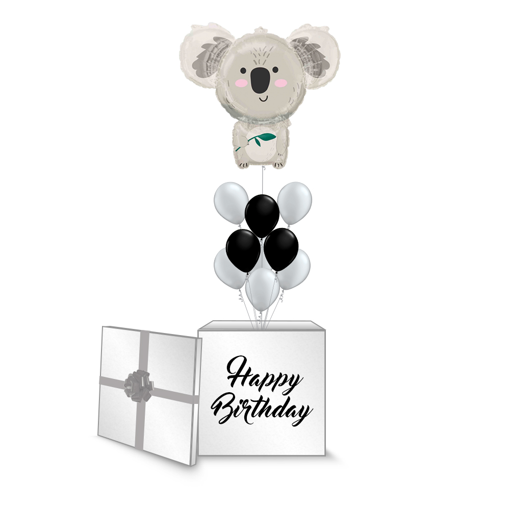 1 piece 1 meter by 1 meter White Big Gift Box with ribbon and “Happy Birthday” message, sticker in Black