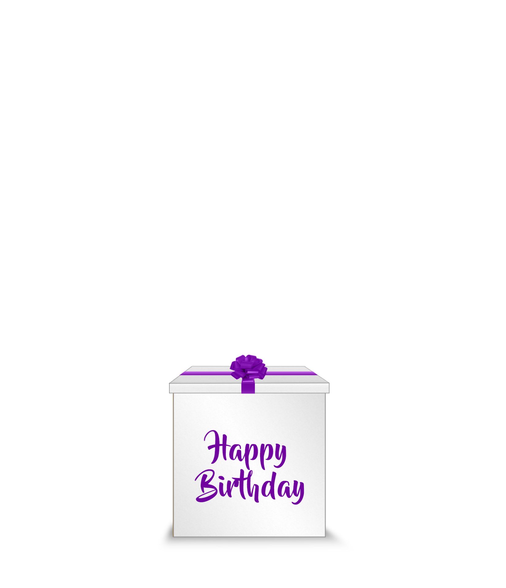 1 piece 1 meter by 1 meter White Big Gift Box with ribbon and “Happy Birthday” Message outside the box in Purple sticker
