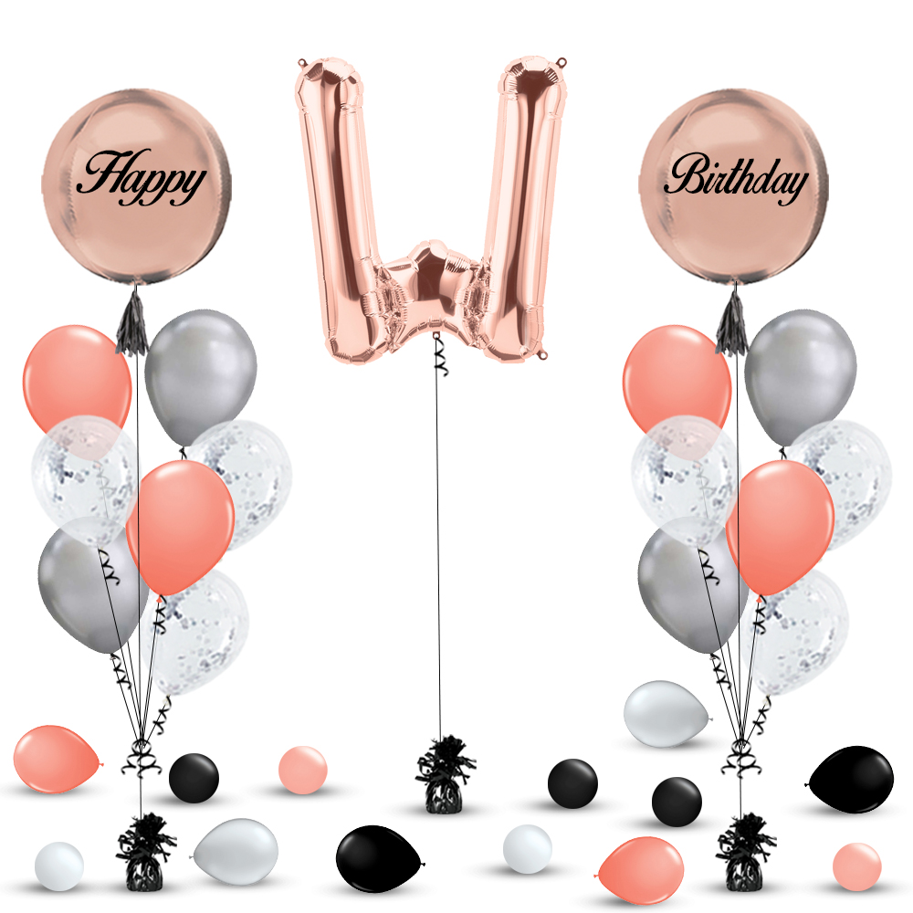 1 piece Rose Gold Orbz with "Birthday" message in Black and Black Tassels