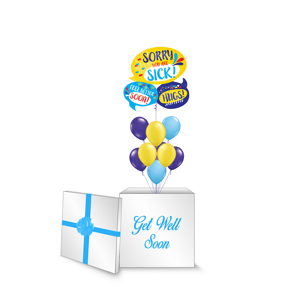 1 piece 50cm by 50cm White Big Gift Box with ribbon and “Get Well Soon” message, sticker in Light Blue