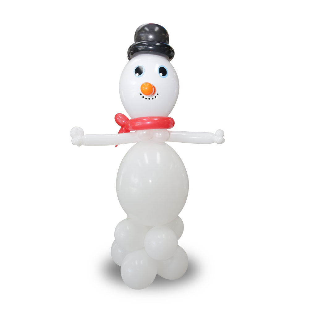 A snowman stand balloon sculpture, 150cm height x 100cm width.