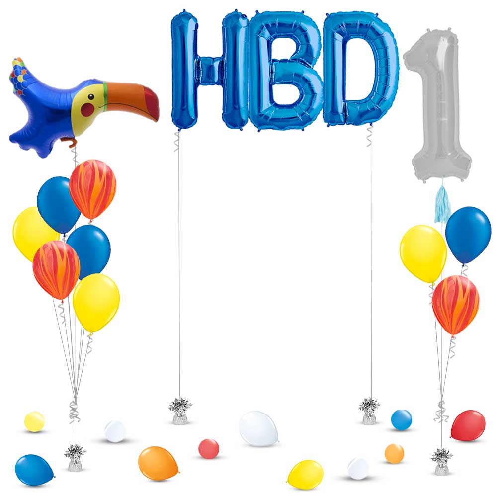 1 piece 34 inch Number Silver Foil Balloon with Blue Tassel at the bottom
