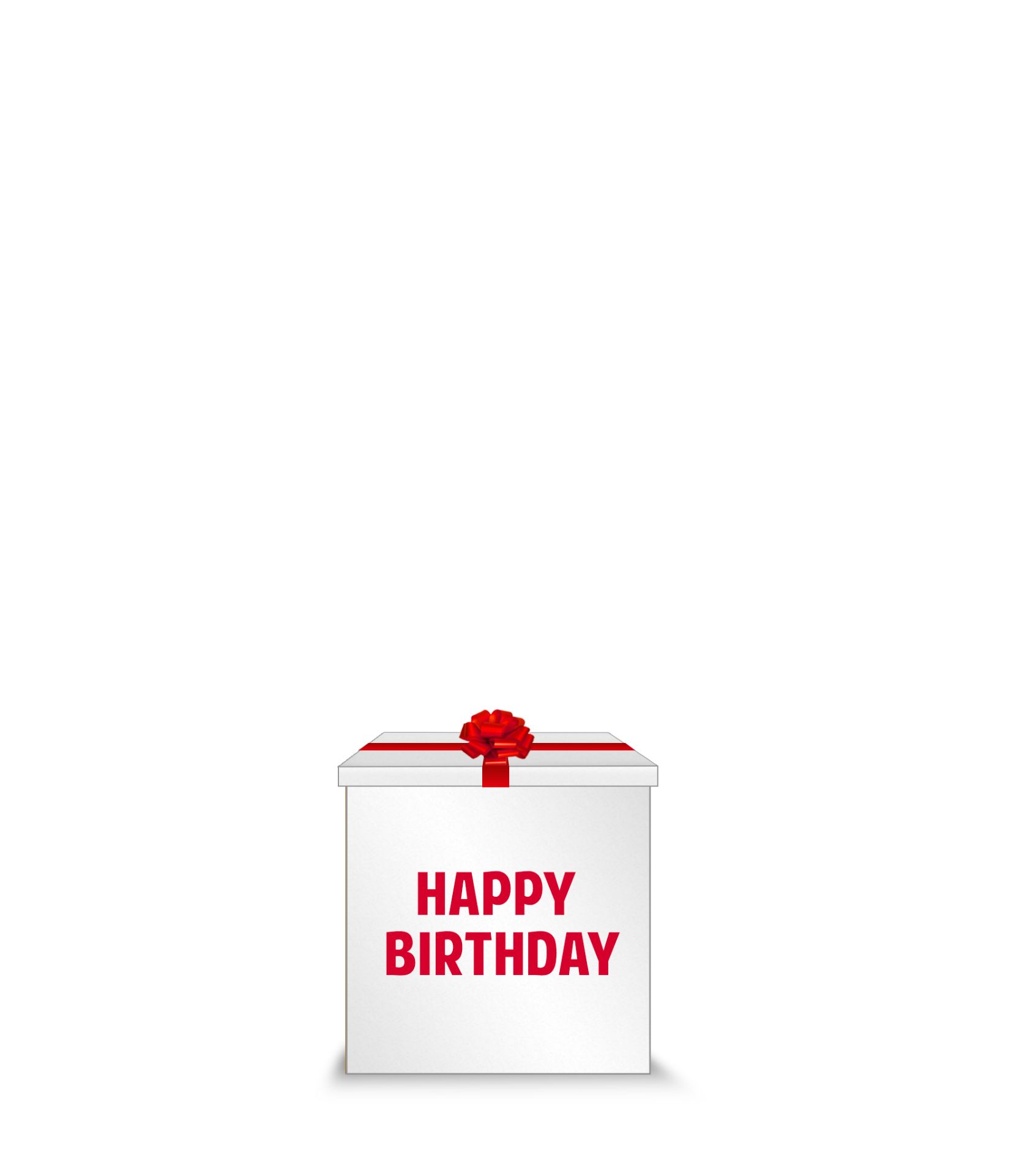 1 piece 1 meter by 1 meter White Big Gift Box with ribbon and “Happy Birthday” message, sticker in Red