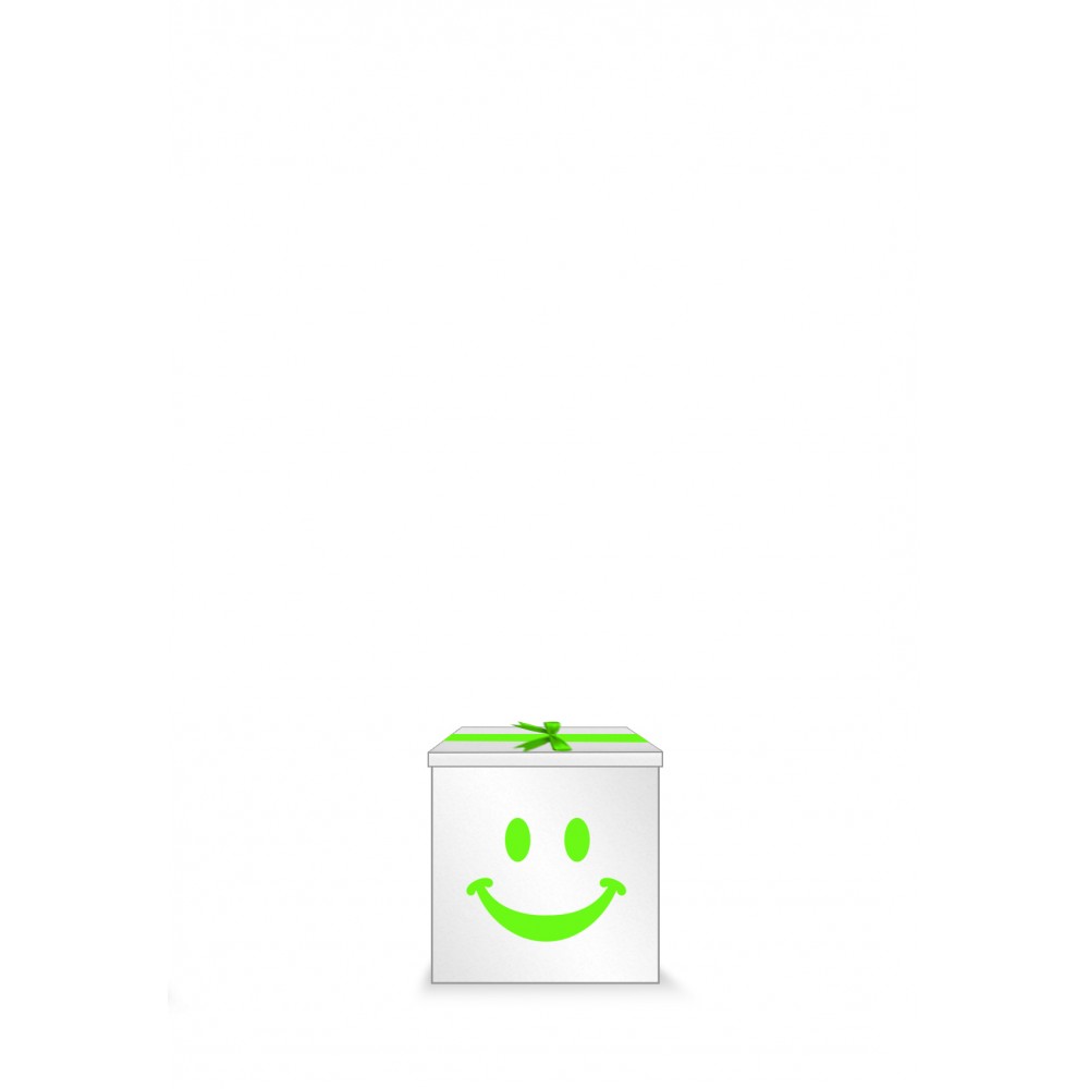 1 White Small Gift Box with ribbon and “Smiley Face” Message outside the box in Lime Green sticker
